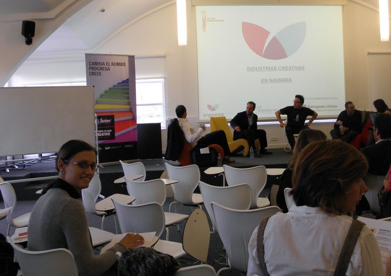 Acudieron a la jornada Arantxa Rodríguez, del Europe Direct y Beatriz Chagoyen, del área de empresas y emprendedores de Cederna Garalur participando en algunas de las ponencias como la ppresentación del Diagnóstico Sectorial de las Industrias Creativas en Navarra, proyecto Europeo Organza y una mesa redonda que contó con la participación de experiencias como «La Casa Encendida» y «Bilbao Design Academy.