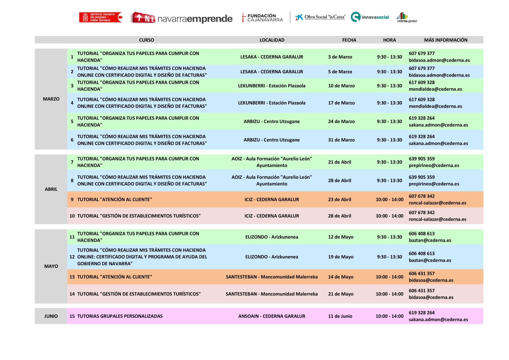 Las actividades se impartirán en Lesaka, Lekunberri, Arbizu, AOiz, Iciz, Elizondo y Doneztebe/Santesteban, además de un taller de tutorías grupales