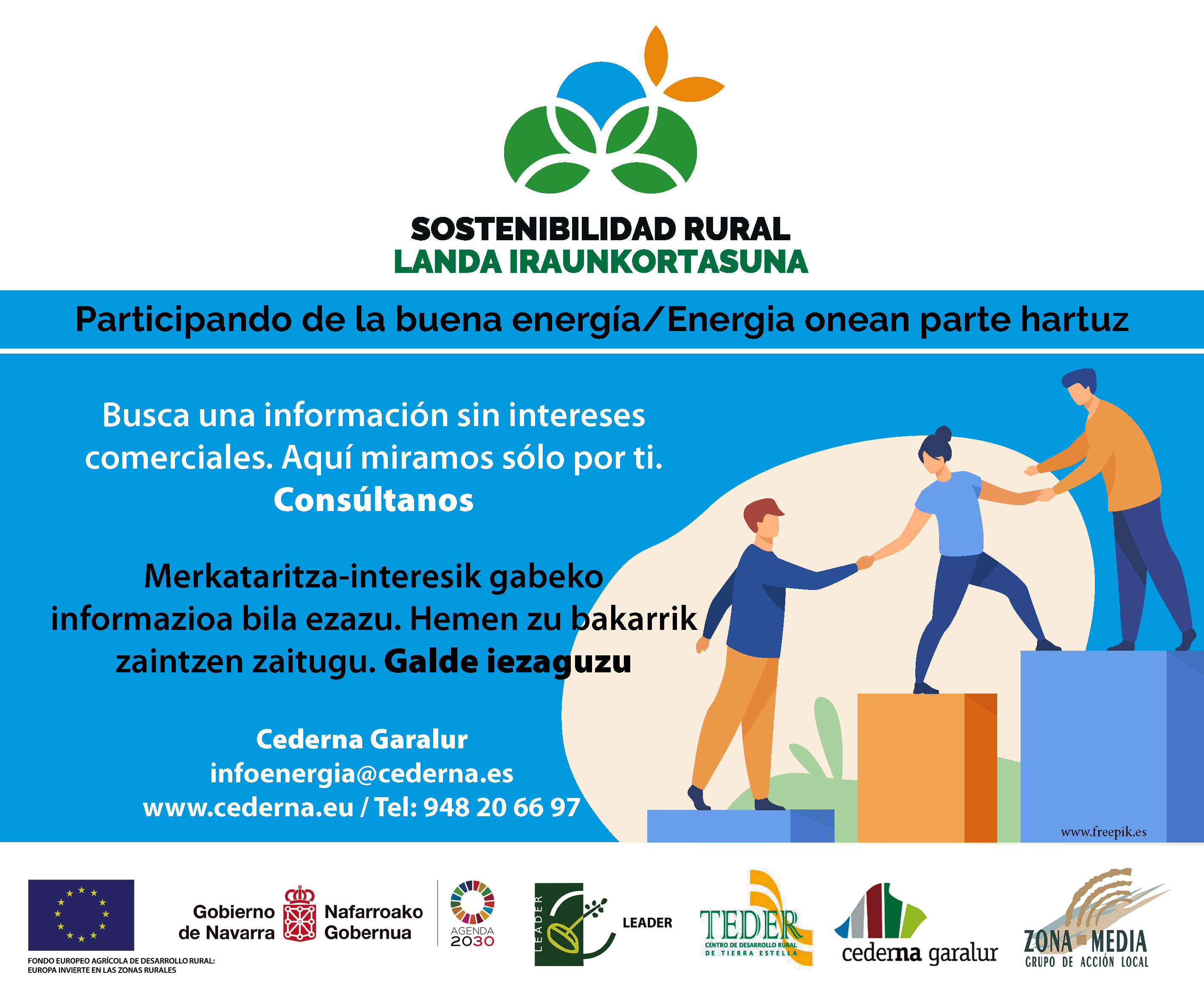 «Sostenibilidad Rural/Landa Iraunkortasuna« es un proyecto de cooperación en el que participan la Asociación Cederna Garalur, el Consorcio TEDER y el Consorcio de la Zona Media.